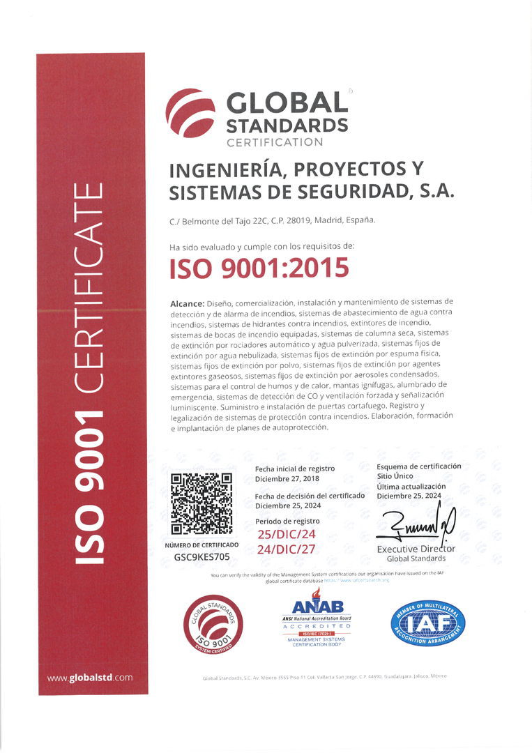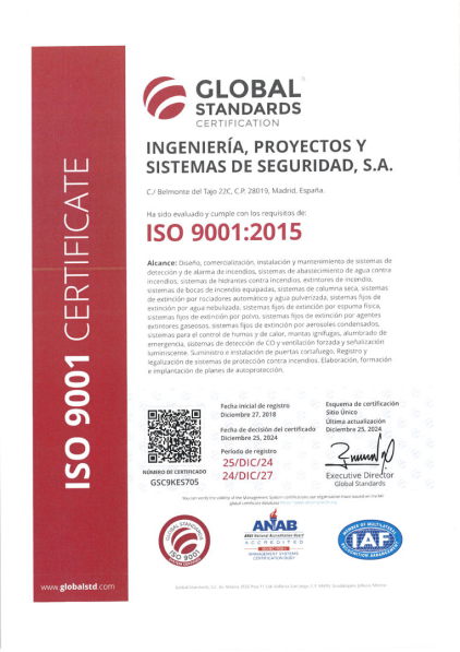 Nuestra empresa ha obtenido las certificaciones obligatorias exigidas en el ámbito de la Protección Contra Incendios, así como otras que dejan patente nuestro compromiso con la seguridad y salud